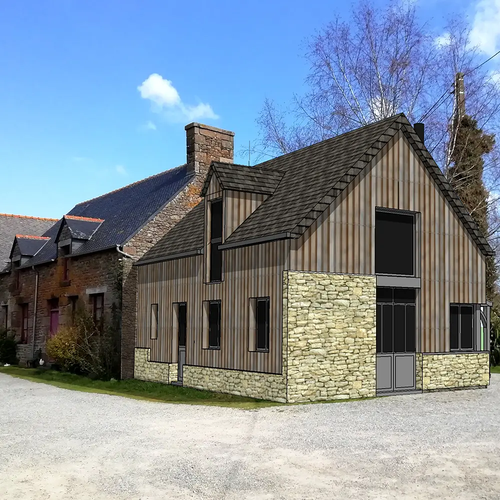 Le projet d’extension d’une maison de campagne consiste à créer une nouvelle pièce de vie à l’emplacement d’un garage existant.